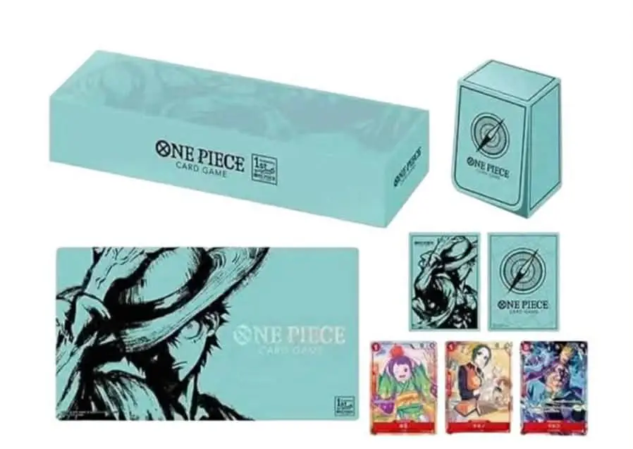 Le ONE PIECE CARD GAME – 1st ANNIVERSARY SET est un coffret officiel célébrant le 1er anniversaire du jeu. Il s’agit d’un produit premium orienté collectionneur, avec des cartes inédites et des accessoires officiels (playmat, sleeves, rangement).